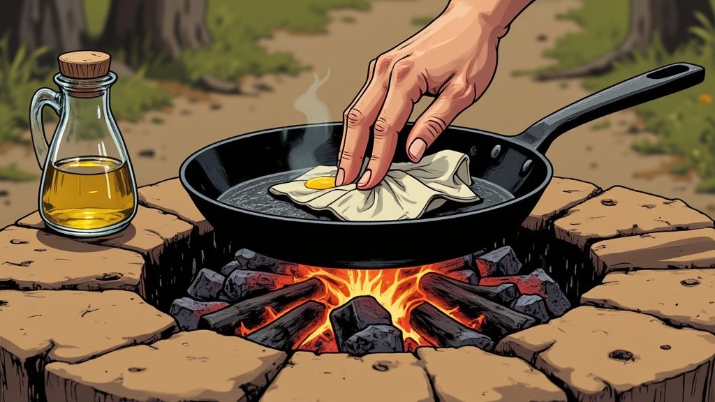 Right, let’s talk about how to season cast iron. This is the secret step that turns a good potjie or skillet into a family heirloom. Essentially, you’re baking a thin layer of oil onto the surface. This creates a natural, non-stick coating that’s also rust-proof, making sure your gear lasts for generations of braais.