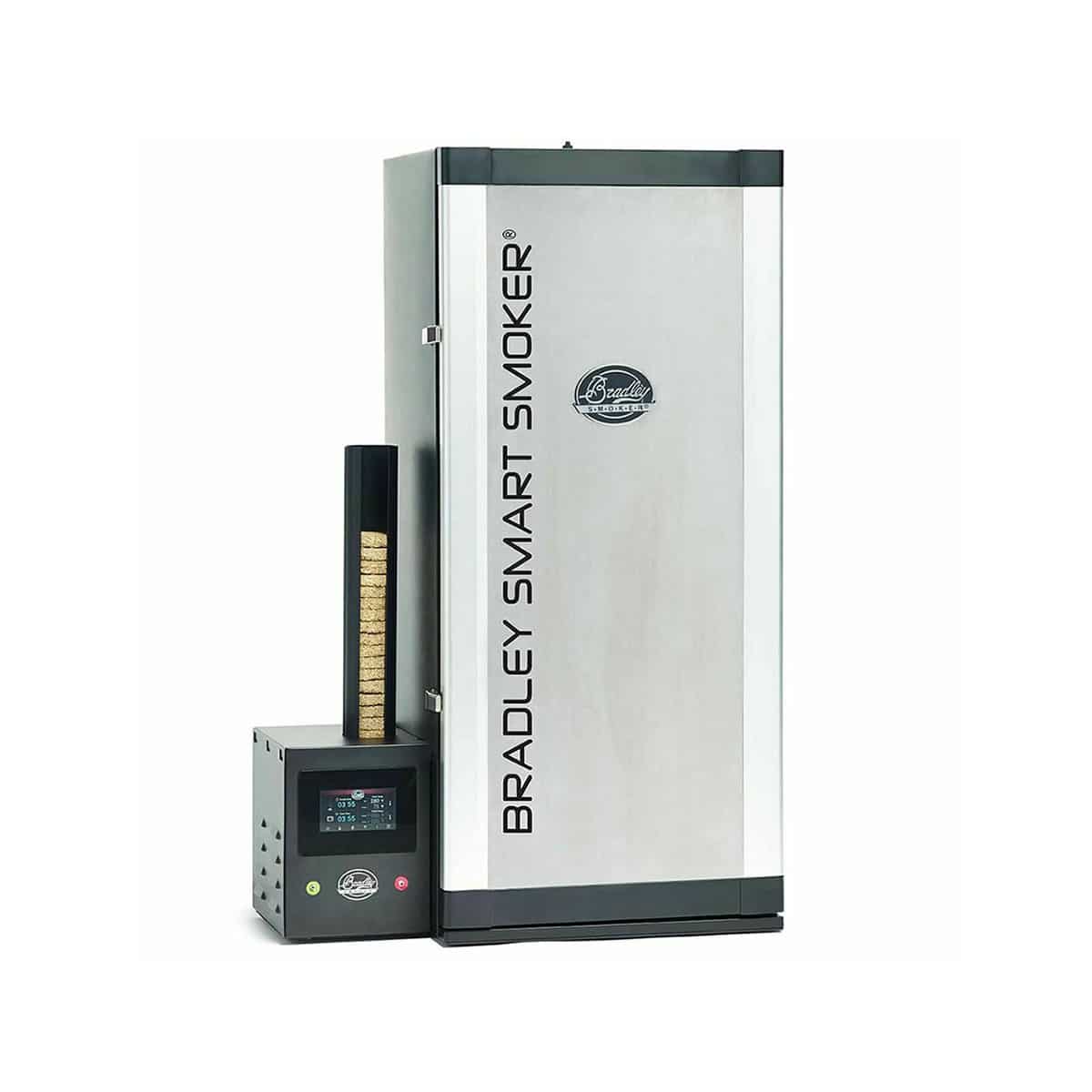 The Bradley Smart Smoker® is our newest automatic electric smoker, which is the result of years of advancement and testing on existing smokers. We have included many of the same features as our Bradley Digital Smoker and added innovative iSmoke® Technology, you can now control the smoker from Bluetooth-enabled smartphones in real time and from the touch screen control center. In addition, two removable color-coded temperature probes allow you to measure heat in different areas of the smokehouse simultaneously, for advanced monitoring. The fully insulated stainless steel interior and commercial grade silicone door seal makes for easy clean-up and keeps the smoke where it’s supposed to be.