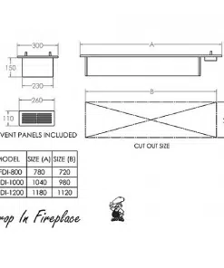 The The Drop-In 800 Fireplace is Ideal for medium to large open-plan homes with a raised island between two feature areas. The Drop-In 800 Fireplace incorporates a flue less burner design for optimal heat output, and must be dropped into a 270 x 750 mm cut-out in a raised island. Vent Panels included.