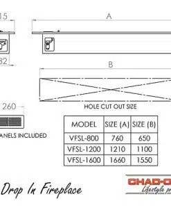Leading aesthetics are accompanied by a brand new burner design, aimed at lowering Gas consumption and improving heat output. The Flameline Drop-In fireplace must be dropped into a 1100 x 152 mm aperture in a raised island. (Stainless steel, Midnight Mirror Black, LPG or Natural Gas options available)