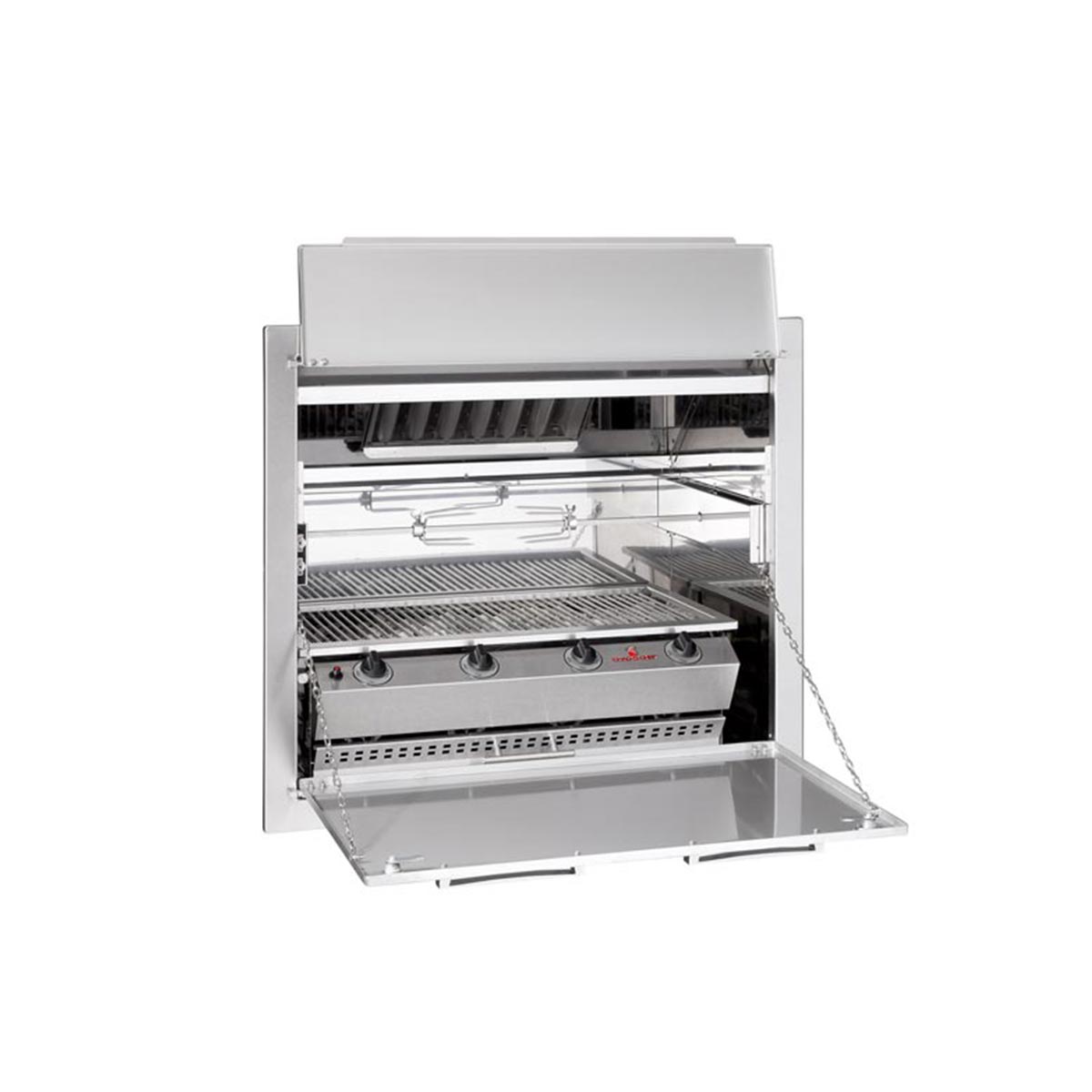 Chad-O-Chef 4 burner Deluxe Entertainer with Rotisserie – Built-in (choose Steel type and Natural or forced Draught) features include: