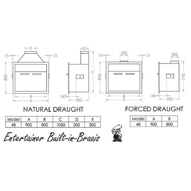 Chad-O-Chef 4 burner Entertainer – Built-in (choose Steel type and Natural or forced Draught) features include: