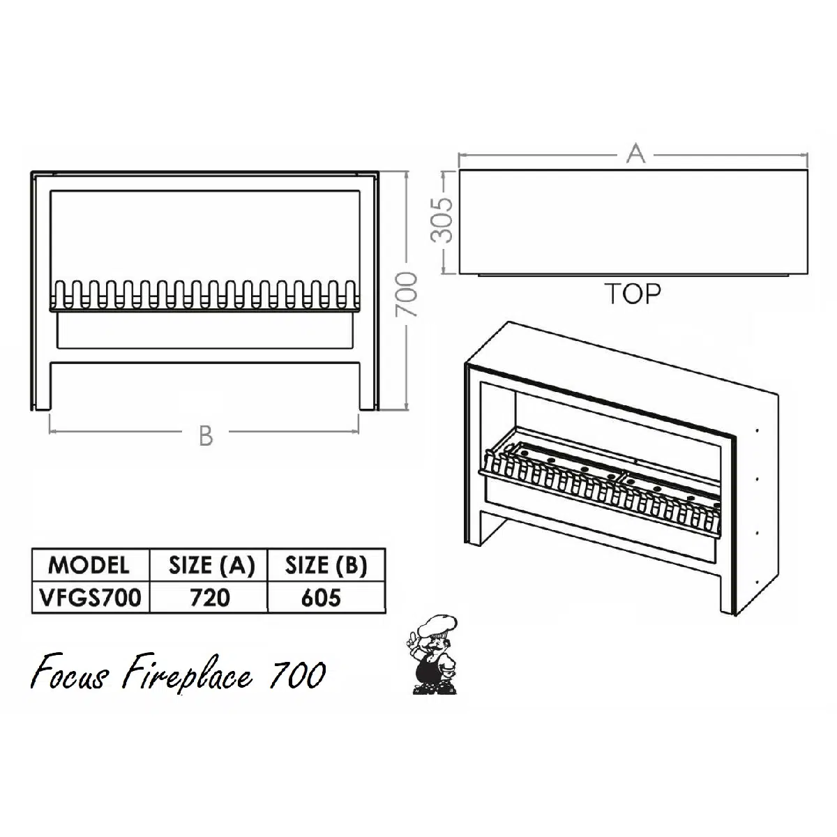 Chad-O-Chef Focus 700 Fireplace (VFGS-700):