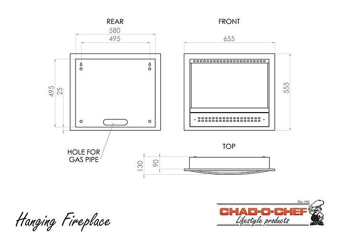 The Flue-less Hanging Fireplace is ideal for heating enclosed patio areas or apartment homes with the ease of a Gas Fireplace.The Hanging Fireplace can be hung on Rawl Plugs fitted onto a wall in the home