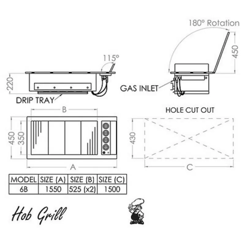 Chad-O-Chef Hob Drop in Braai – 6 burner