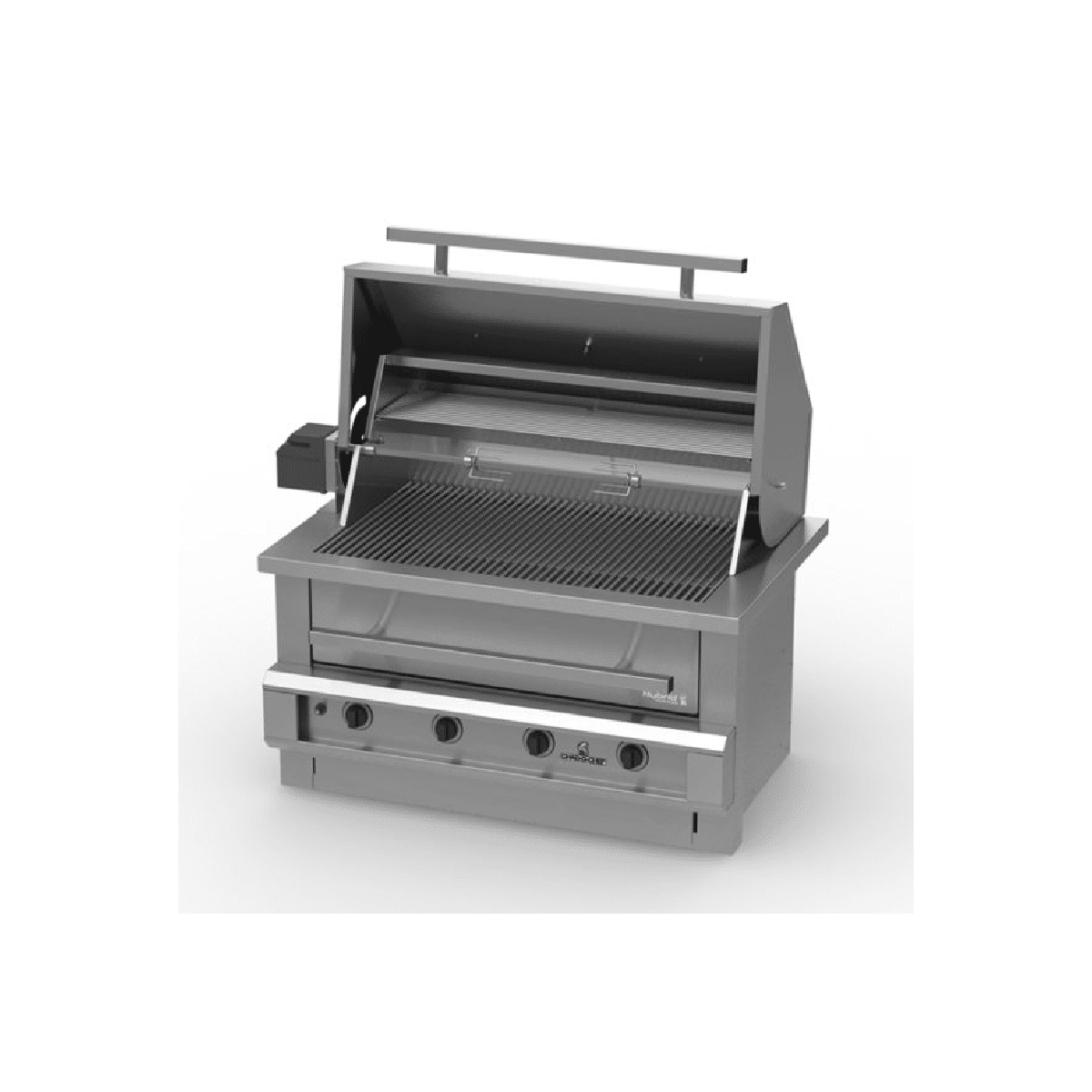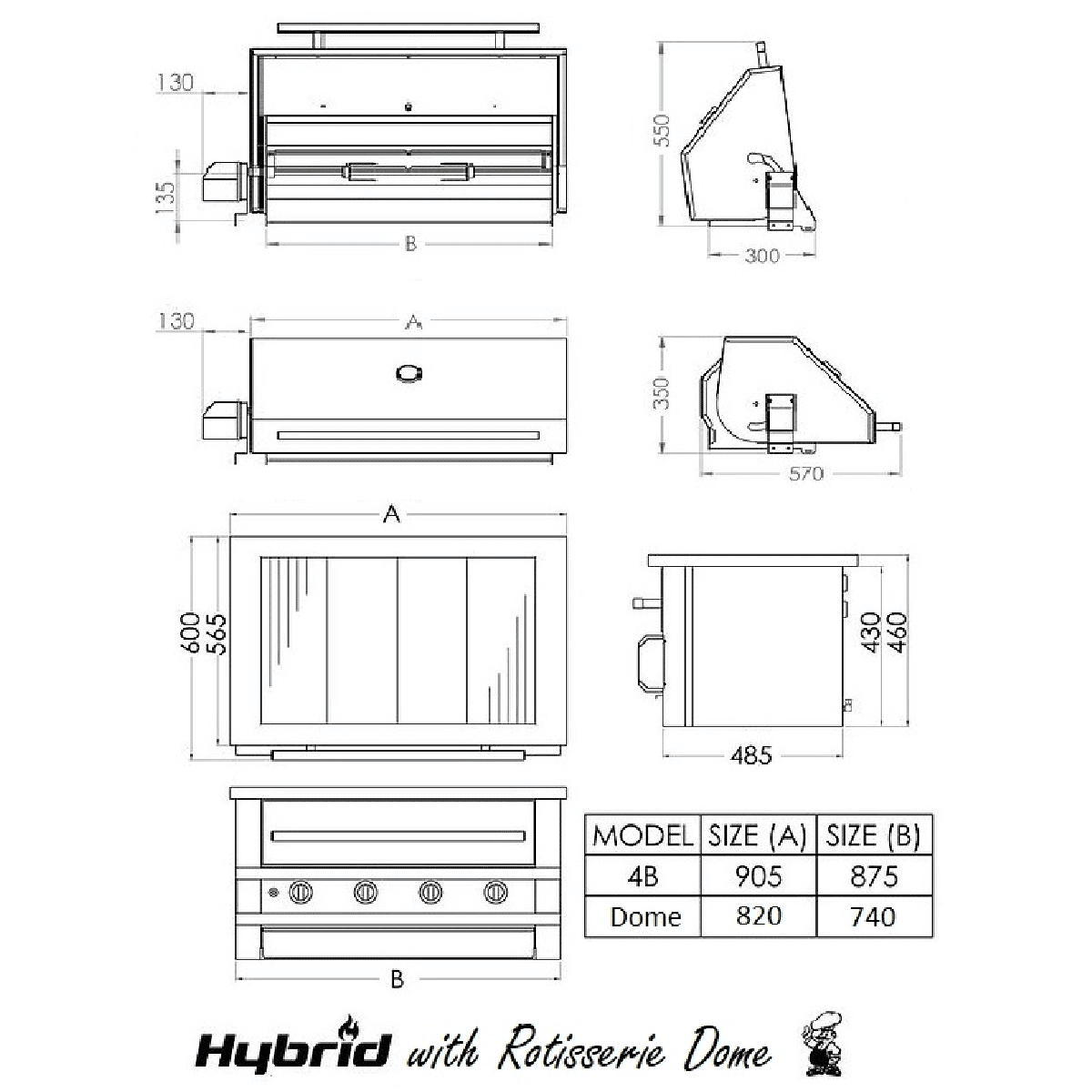 Chad-O-Chef Sizzler 4 Burner Hybrid Braai (with rotisserie dome) features include: