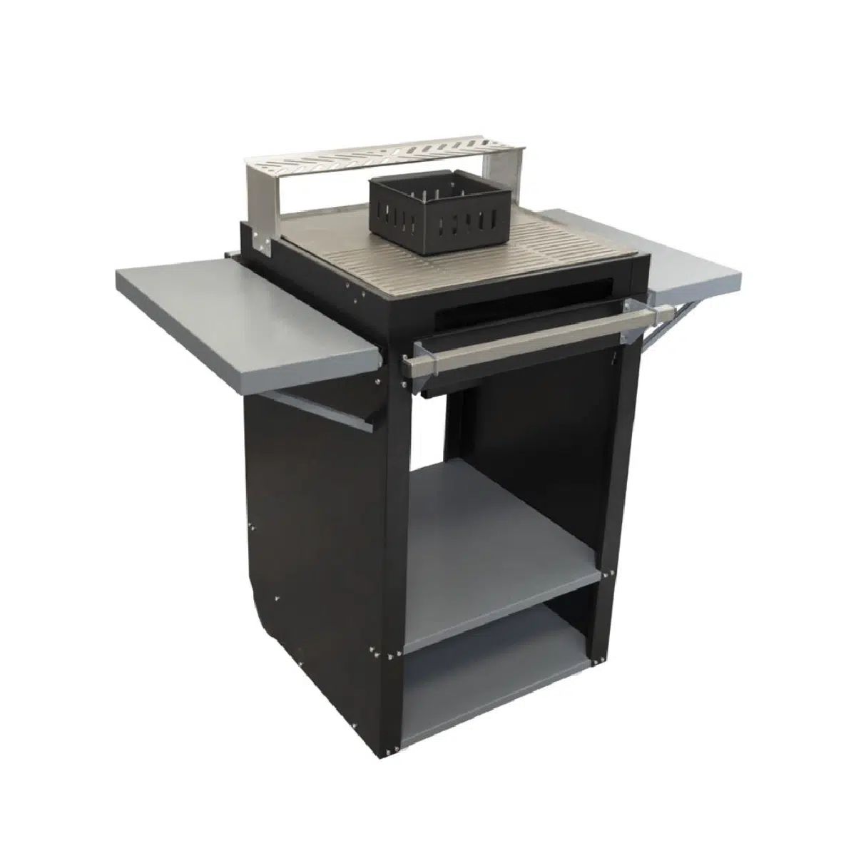 Easy to move around on 2 wheels & side tables that fold down, the Qube Braai takes up minimal space in your entertainment area.