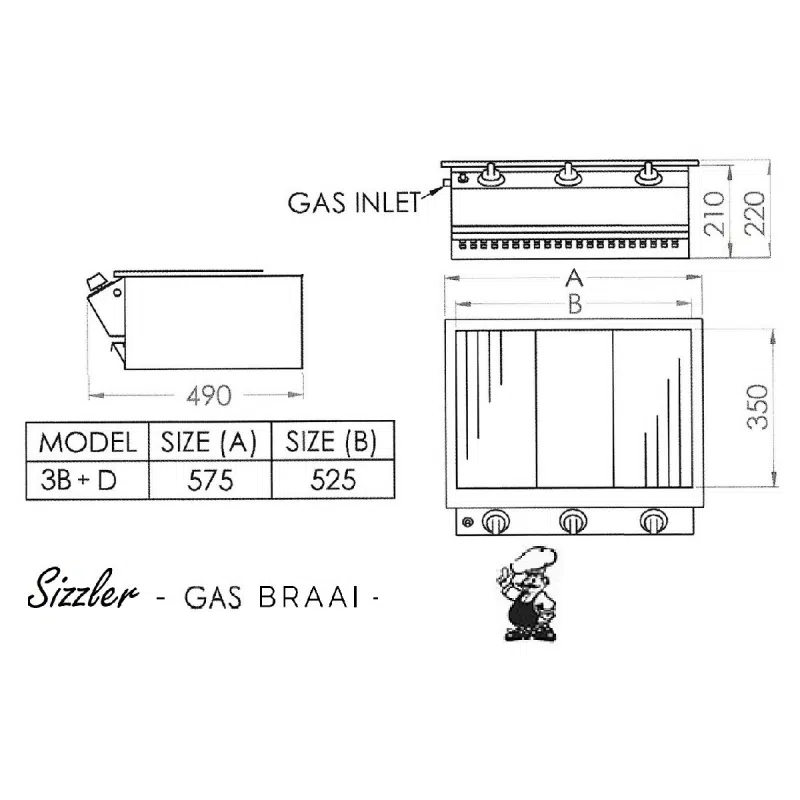 Chad-O-Chef 3 Burner Sizzler features include: