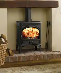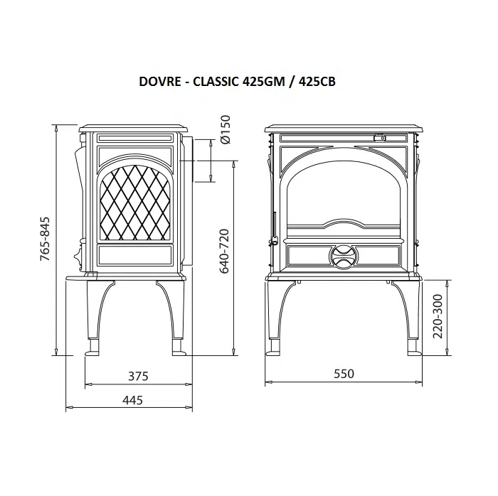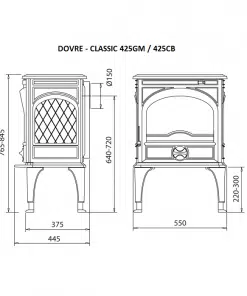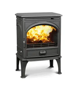 The Dovre Classic Series features a fresh, modern style of freestanding traditional fireplaces. The Dovre Classic 425GM has a rustic, cast iron design with a large glass window and height adjustable legs. It features decorative sides, subtle curves and compact dimensions.