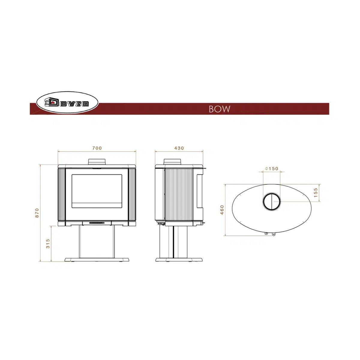 Dovre Bow on Pedestal Slow Combustion Cast Iron Fireplace specifications:
