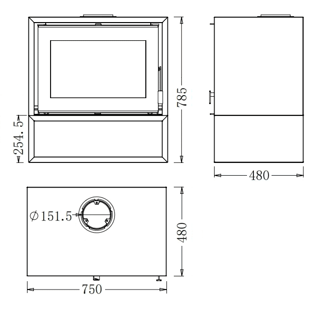 | Fireplace Dimensions (depth x width x height) | 480 mm x 750 mm x 530.5 mm |