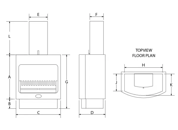 HomeFires 750 Maluti Freestanding with Glass Sides Fireplace Unit Features