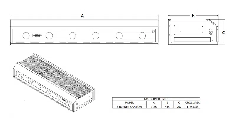 - 6 Burner Shallow gas grill with igniter – 30000126