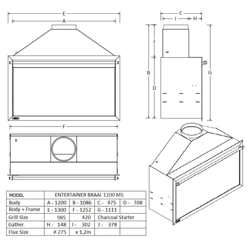 Jetmaster 1200 Entertainer (UNIBraai) (Cut for Gas) Built-in Braai features