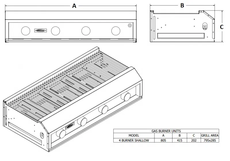 - 4 burner shallow gas grill with igniter (LPGSA approved)