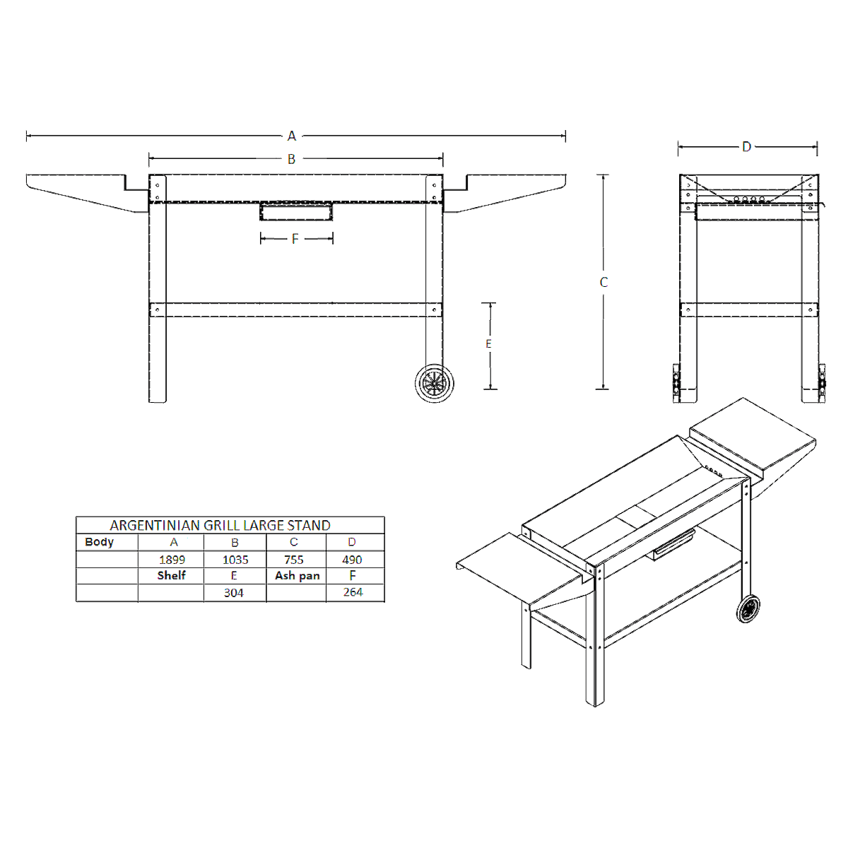 - Constructed using Mild Steel capable of supporting the weight of the grill and its contents and providing a functional and sturdy base.