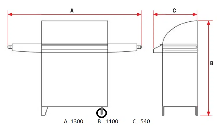 - Hood – double layered, Outer panel 0.8 mm (SS #430), Side panels 0.8 mm steel coated with black powder coating. Inner panel by 0.5 mm aluminum coated plate.