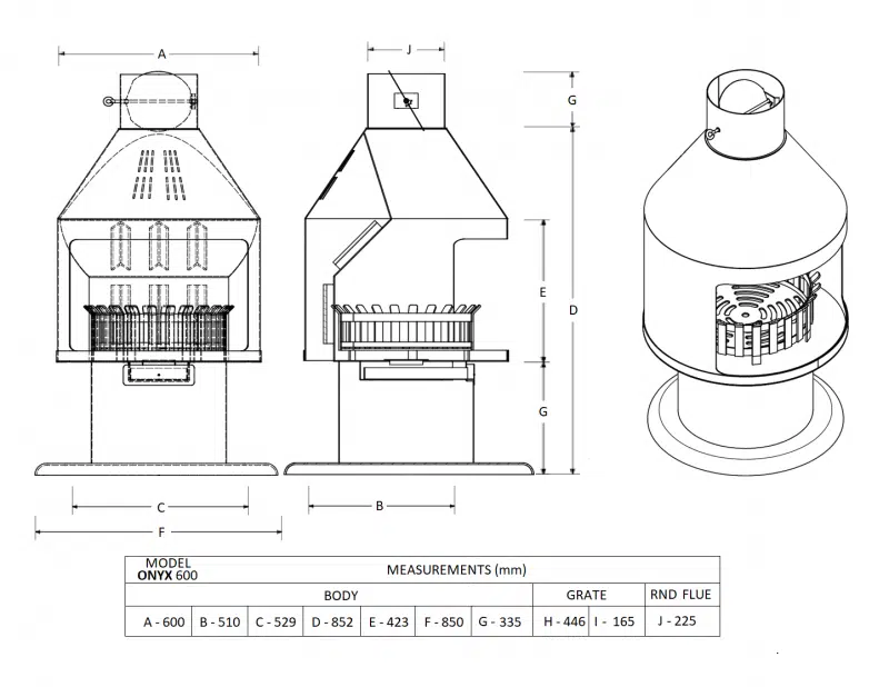 ONYX 600 fs Fireplace with 3,6 m Flues and Storm Cowl – Bundle Deal features: