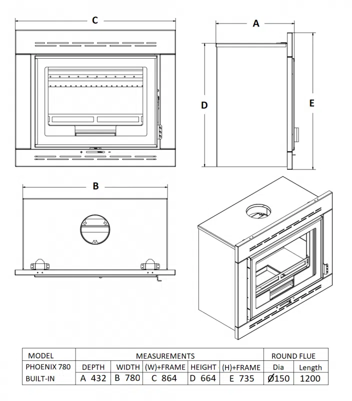 The Phoenix Built-In Fireplace is a handsomely crafted unit with a large glass door, with a view of the flames, ensuring powerful heating and efficiency. Designed for past and modern homes, the stylish Phoenix Built-In is the perfect addition to any home.