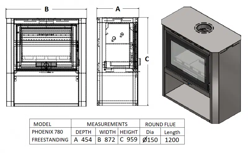 The Phoenix 780 Freestanding Fireplace is a handsomely crafted unit with a large glass door, with a view of the flames, ensuring powerful heating and efficiency. Designed for past and modern homes, the stylish Phoenix Built-In is the perfect addition to any home.