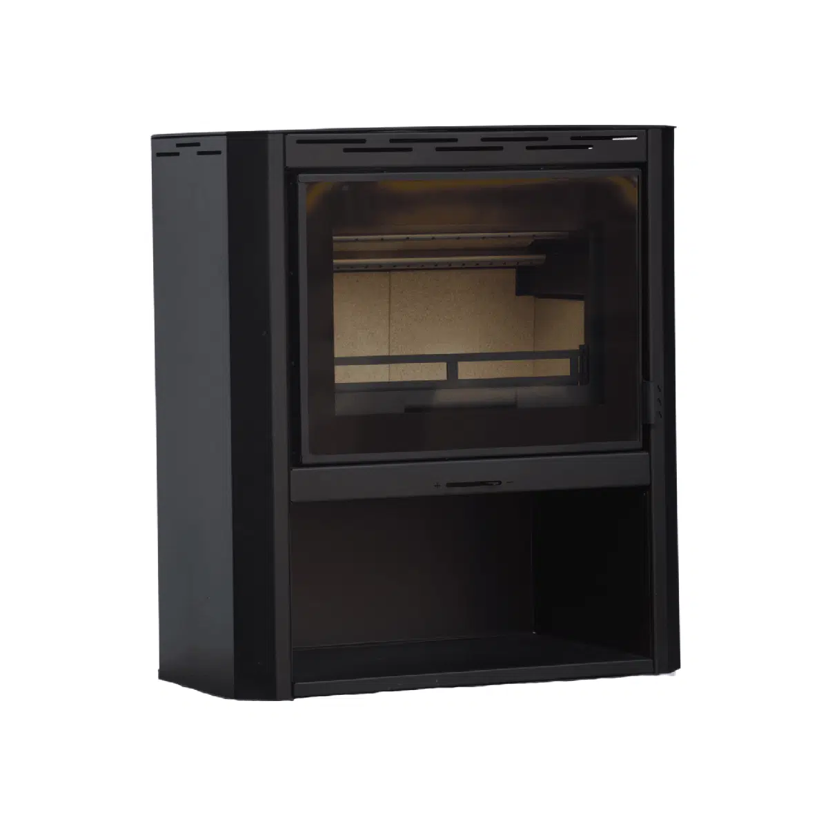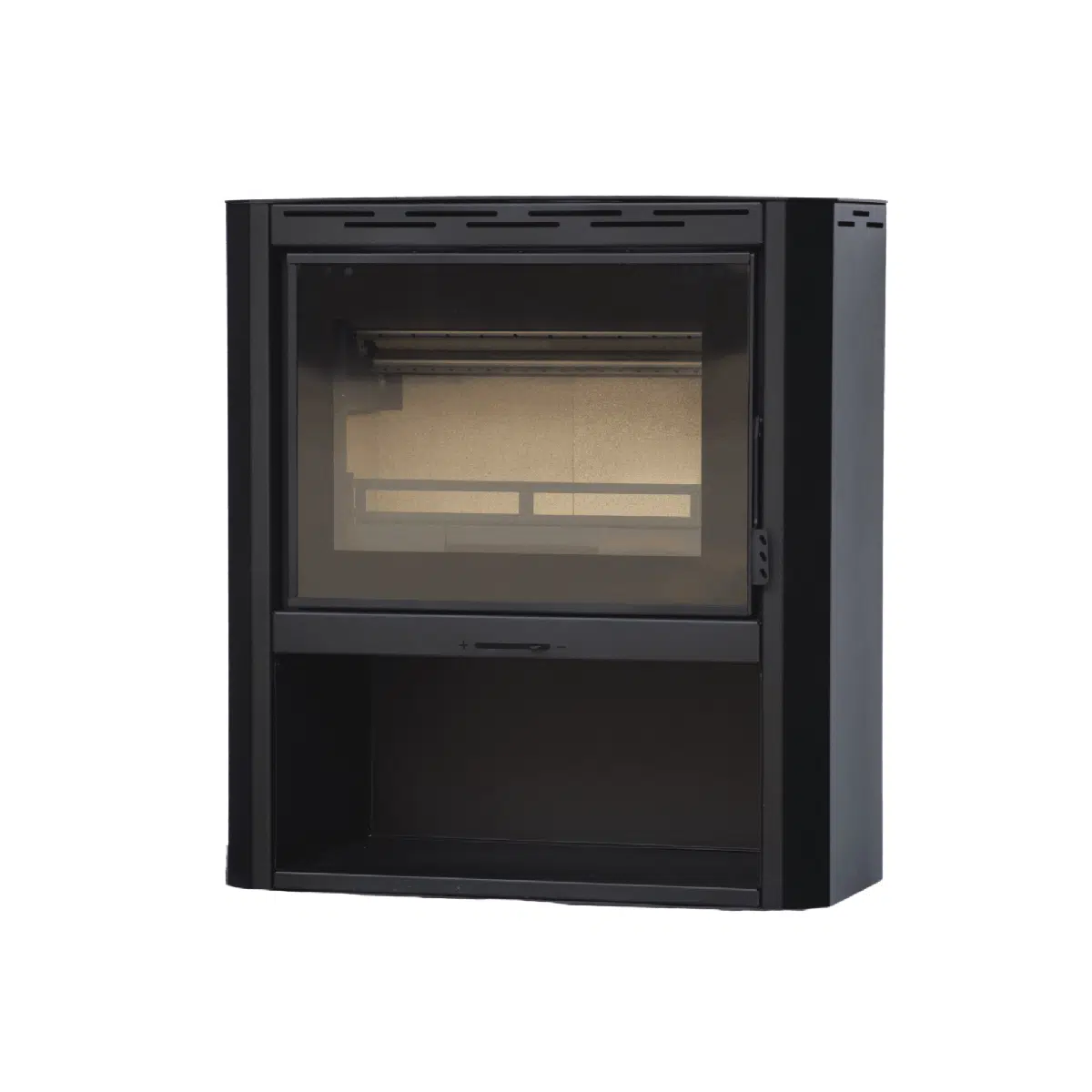 - Large glass windows for unrestricted view of flames.