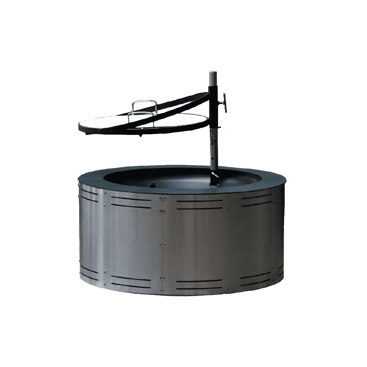 The Moremi Braai Pit, body constructed from stainless steel, with a grill kit featuring an adjustable swivel lever, allowing for temperature control and perfect cooking. The braai pit’s design allows for the removal of the grill, creating a true firepit experience. Includes an installation manual, for ease of assembly.