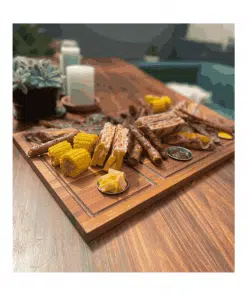 My Butchers Block – “Shisanyama” Plankie Braai Board Large Manufactured of premium quality wood and made to last a life time, can be used for all preparation needs, elegant and beautiful! Motivated by our passion for all things local, the product range is inspired by the natural beauty and diverse uses of locally sourced sustainable Knysna Blackwood. All products are made to last a lifetime when treated with our specialized Wood Care oil for maintenance and germ protection.