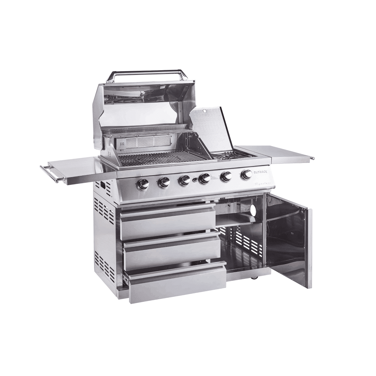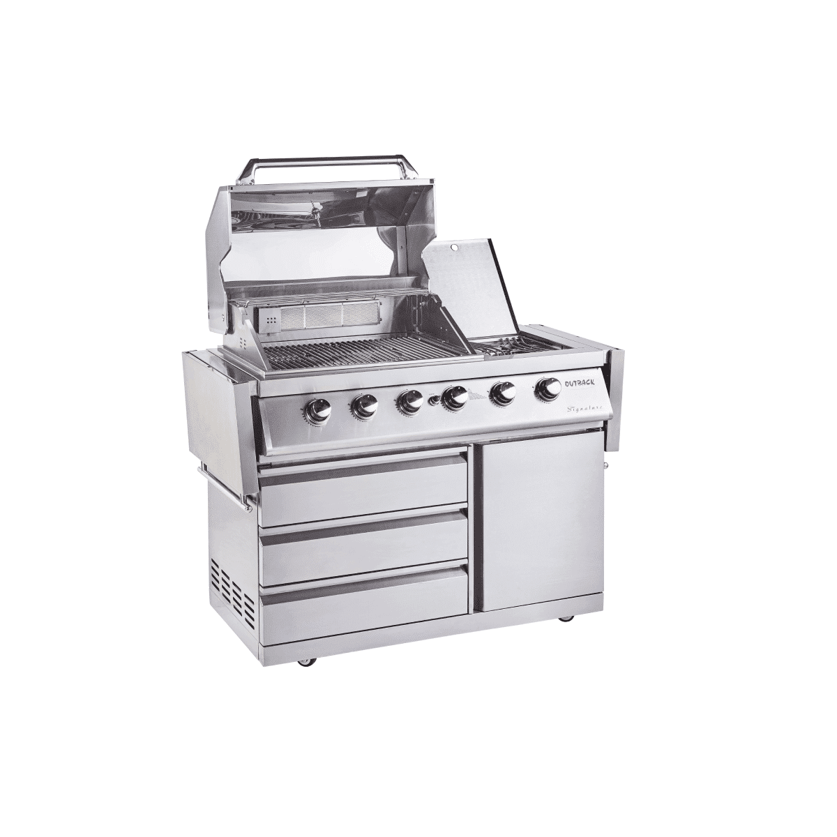 Outback SIGNATURE PRO Hybrid Braai – 4 burners – Stainless Steel – Gas/Briquettes