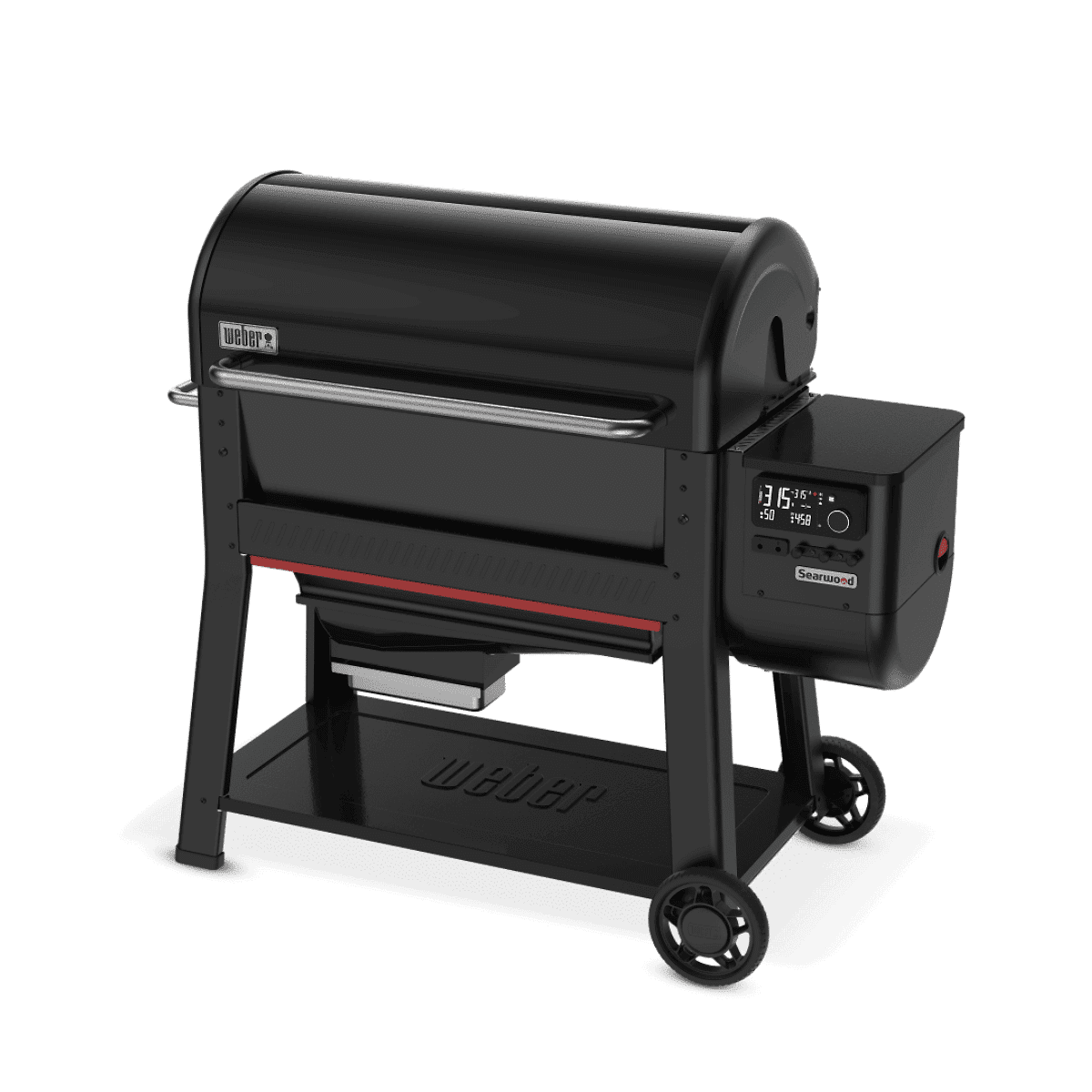 Smoke, sear, roast, and more on the Searwood® Pellet Barbecue with temperature from 80° to 315°C and DirectFlame cooking. The Searwood® Pellet Barbecue heats up in 15 minutes or less, cooks evenly and features a full grate Sear Zone. Cook with digital controls, Wi-Fi® and Bluetooth® connectivity that lets you monitor and control the barbecue remotely, with the Weber Connect® app on your smart phone. Clean up quickly and easily with the pull and clean grease and ash management system located at the front of the barbecue.