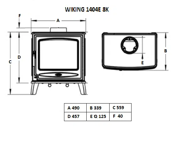 WIKING 1404E 8Kw – Freestanding Slow Combustion Fireplace Product specifications:
