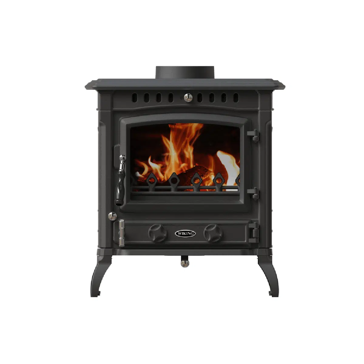 This freestanding Wiking fireplace range is modelled from cast iron. An efficient multi-fuel closed combustion fireplace creating a warm and cosy living space on those cold wintery days. Featuring a flame generous glass viewing area, a picture perfect fireplace that serves as a stunning centre piece.